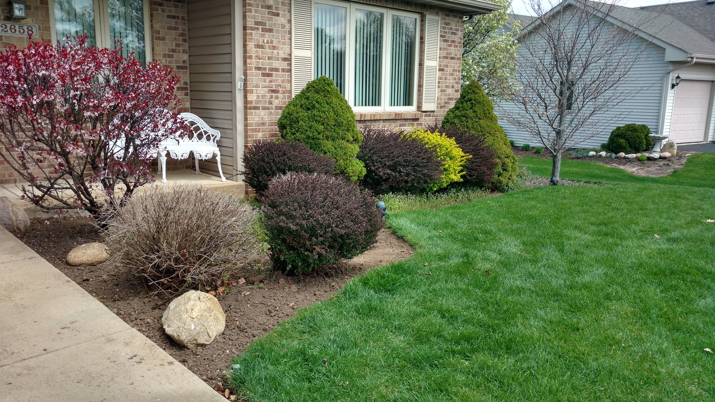 Residential Landscape Design Patio Walkway/Path Paving Brick Shrubs Flowers Trees