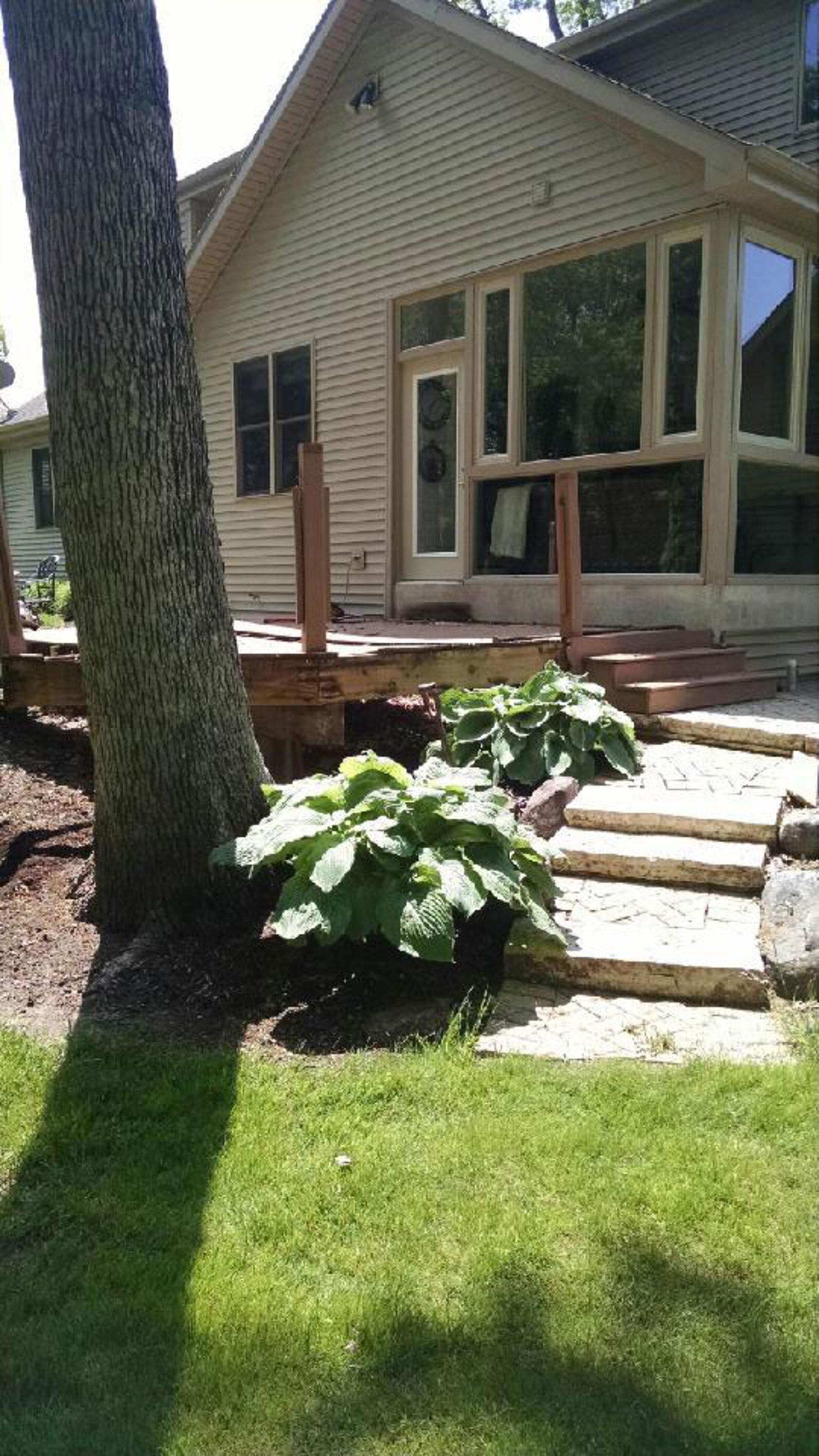 It's always a challenge creating functional spaces on a small footprint, but if you get a little creative it can be done! This homeowner wanted to create a small functional living space. The challenge on this site was the grade change between the back door, the garage door, and the existing lawn. In order to create a cohesive space, we elevated the main patio to reduce the number of necessary steps out the back door. Then we created a large stairway from the patio to the walkway that would meet the garage door on the lower level. Space was extremely limited and difficult to access using our equipment plus we had to deal with an existing mature tree. This situation prevented us from making any major grade changes.