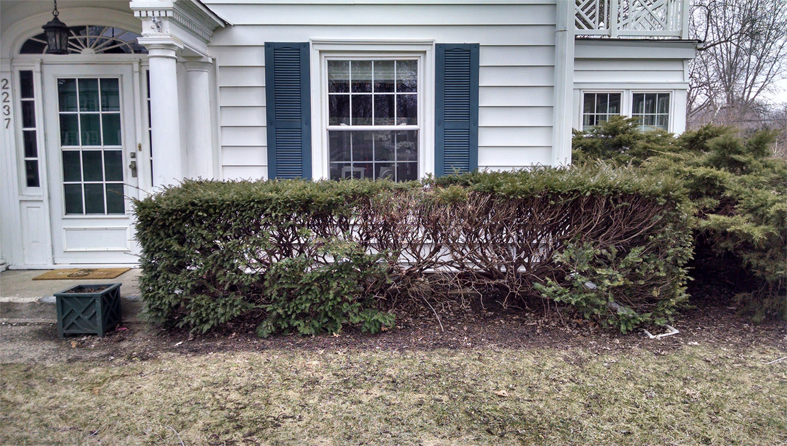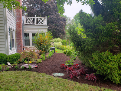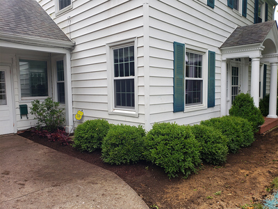 These avid gardeners enjoy working in their beautiful backyard, but wanted a little guidance when it came to renovating their outdated landscaping in the front. The yews were showing massive bare spots and the junipers were overgrown and worn out. Additionally, the front yard was plain and in need of color. The owners wanted a new look without looking too contemporary.